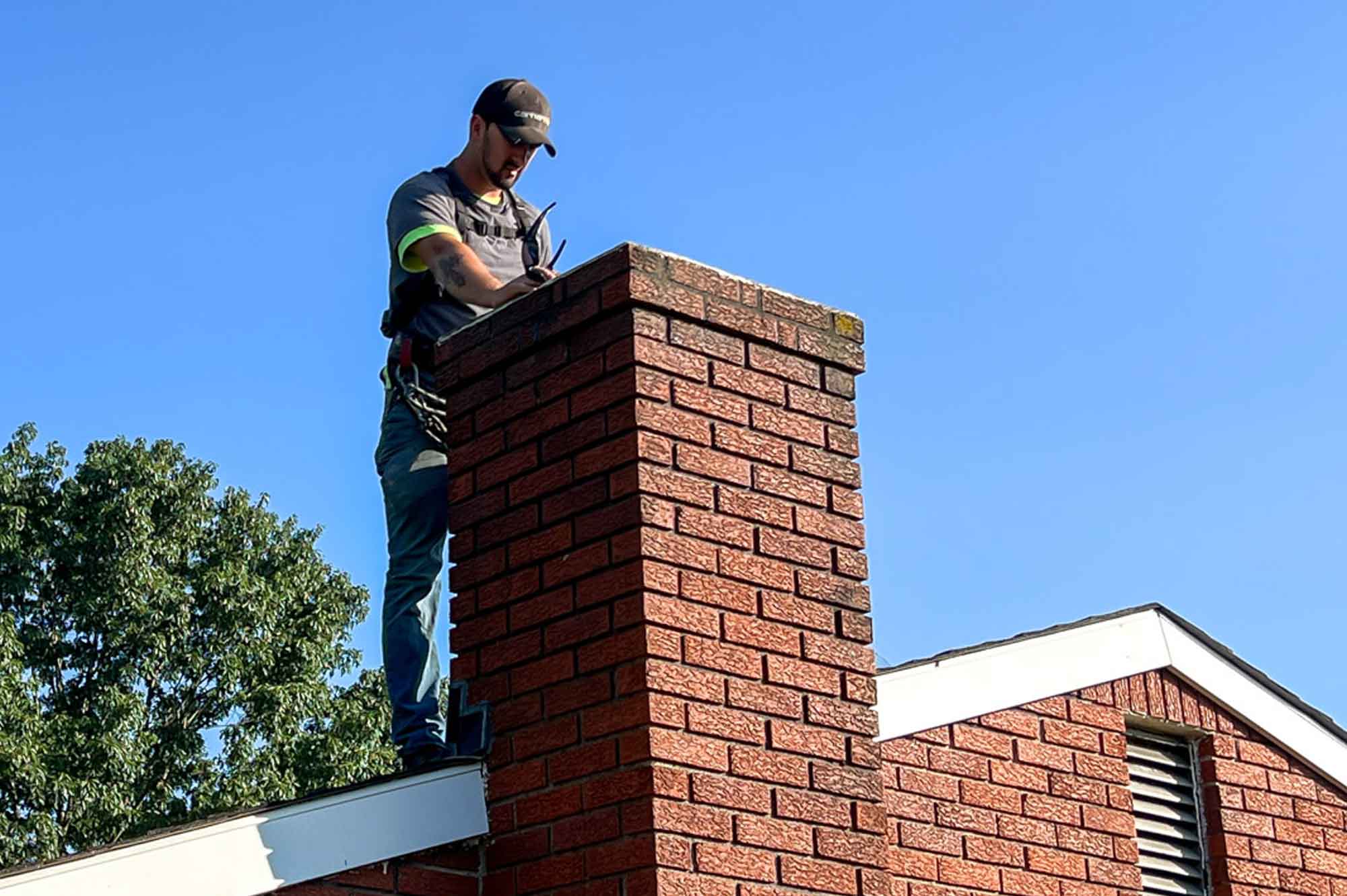 1. Site Assessment: We inspect the stack (often using drone technology or long ladders) to determine the extent of the damage without risking injury.